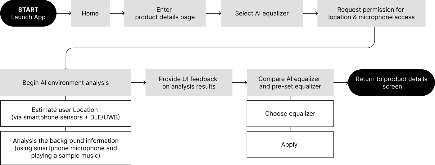 Designed an AI-powered sound experience that automatically adjusts equalizer settings based on the user's environment, content type, and listening preferences. The system enhanced user satisfaction by delivering optimized sound in real time, improving both accessibility and immersion.